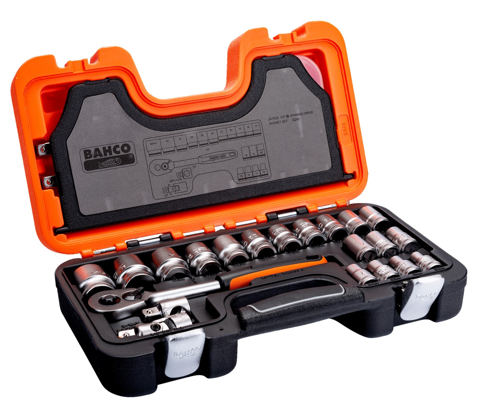 Galvučių ir terkšlės rinkinys Bahco (S240), 1/2", 24 vnt