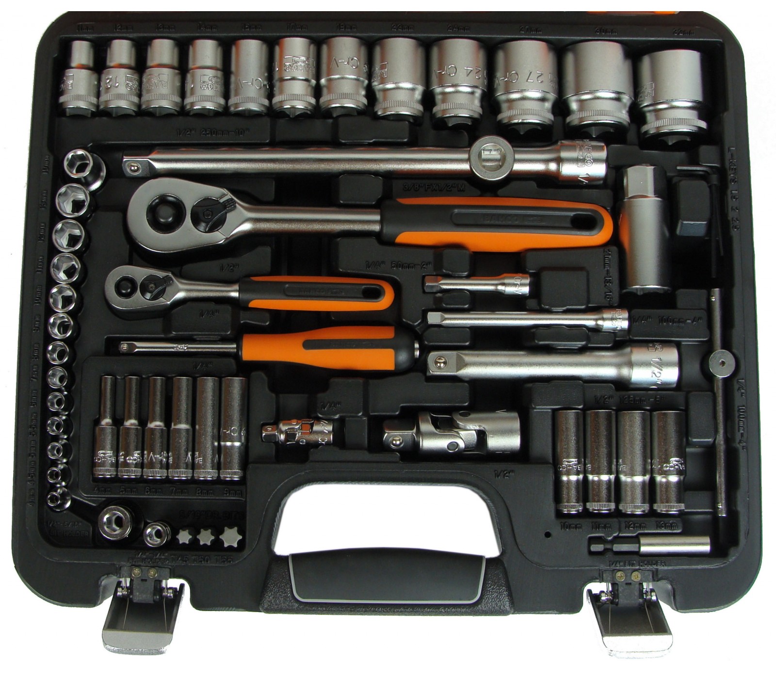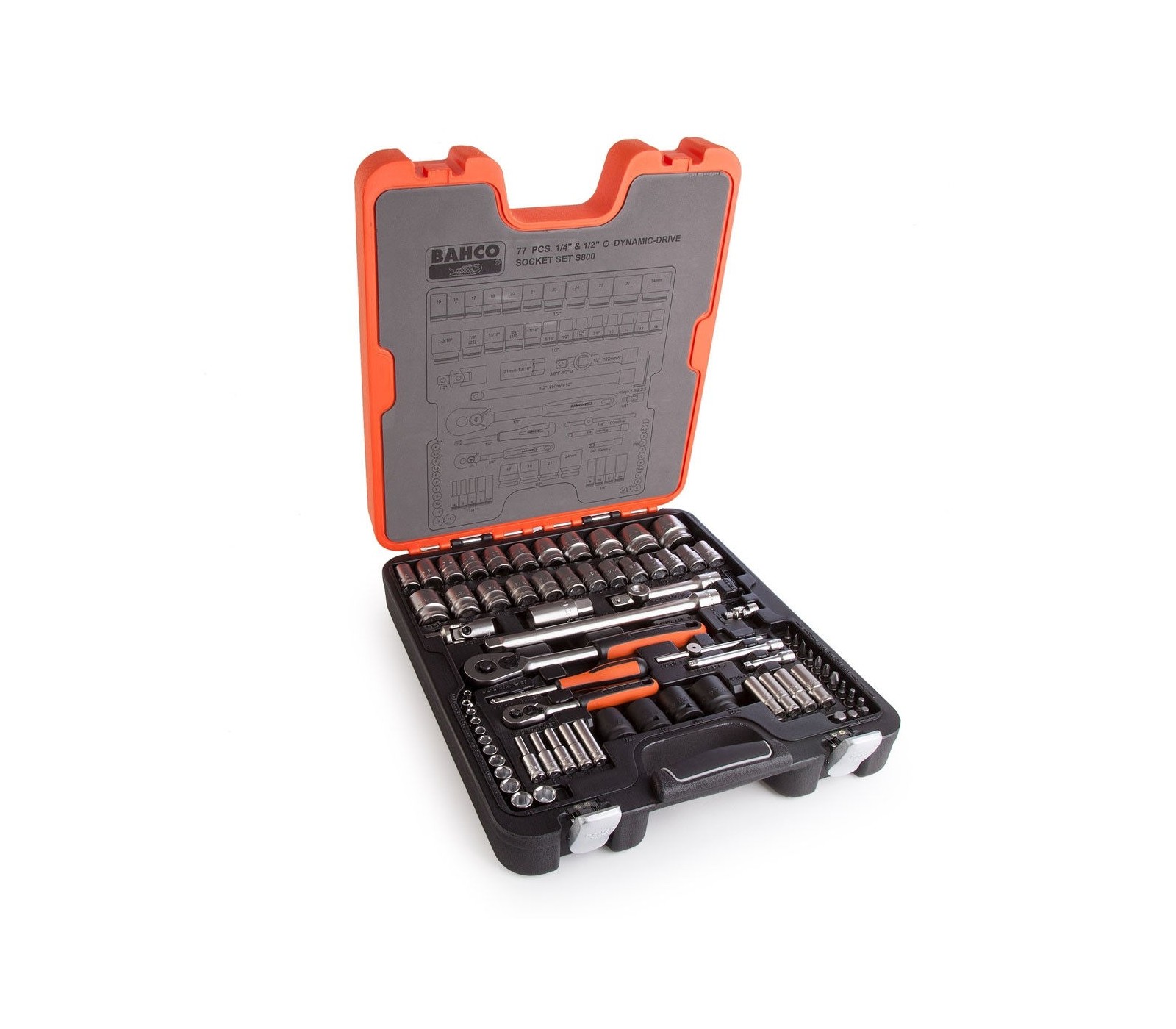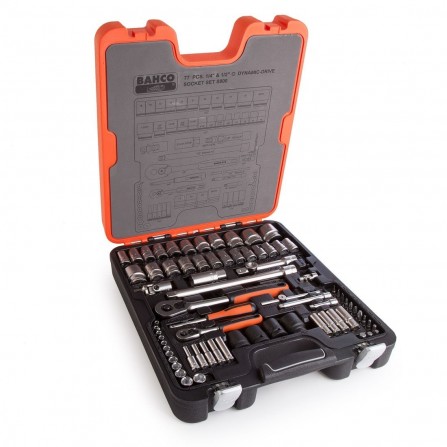 Galvučių ir terkšlės rinkinys Bahco (S800), 1/2", 1/4", 77 vnt