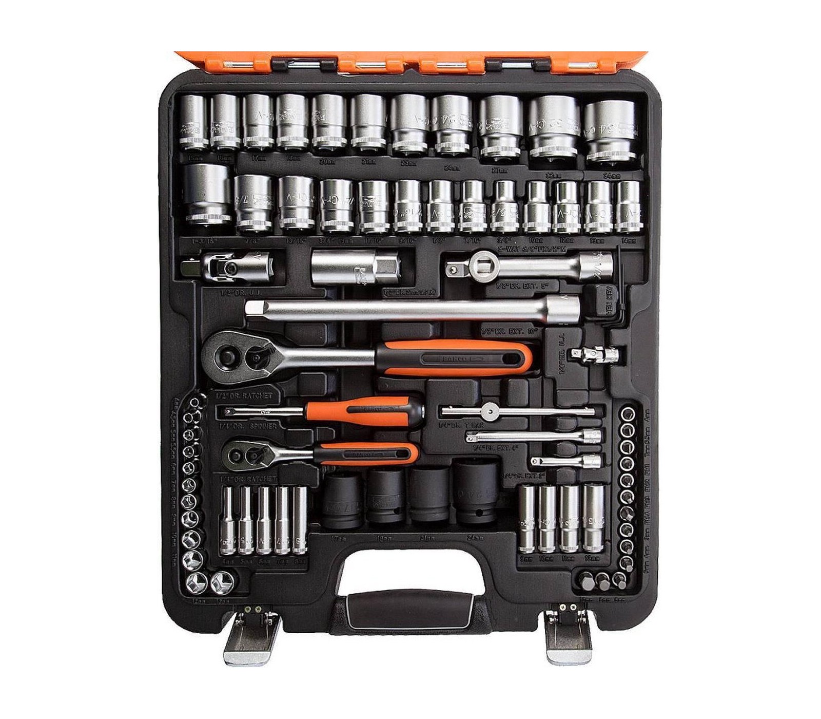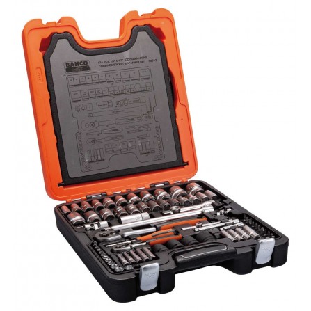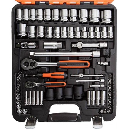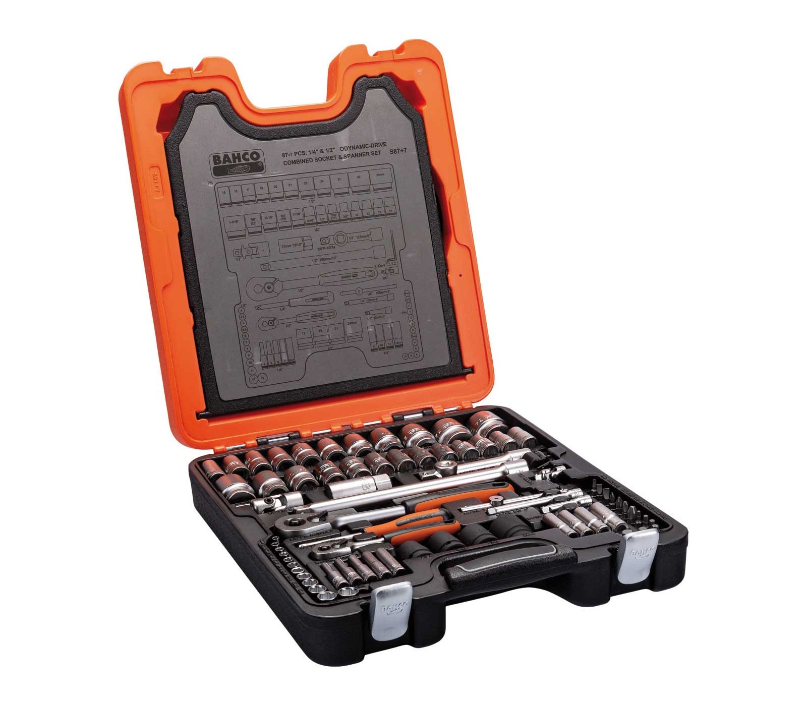 Galvučių, raktų su terkšlėmis ir sukimo antgalių rinkinys Bahco (S87+7), 1/2", 1,4", 94 vnt