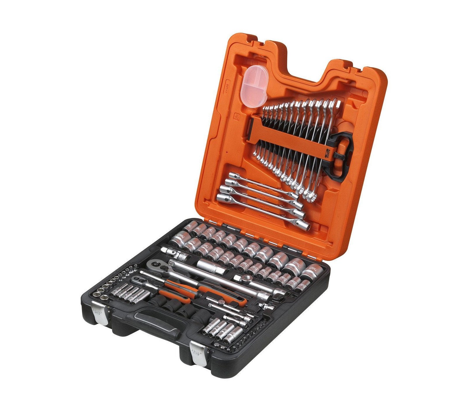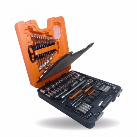 De Bahco gereedschapsset (S87+7) is een uitgebreide collectie van 94 stuks, inclusief doppen, sleutels met ratels en schroefbits. Deze set biedt veelzijdigheid en functionaliteit voor verschillende soorten klussen, wat het een waardevolle aanvulling maakt voor zowel hobbyisten als professionals. Klanten waarderen de duurzaamheid van de materialen en het gebruiksgemak, maar enkele opmerkingen wijzen op ruimtegebrek in de opbergdoos.