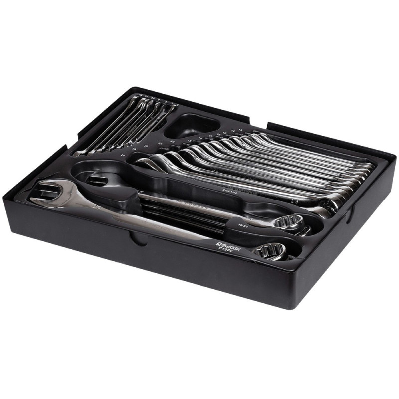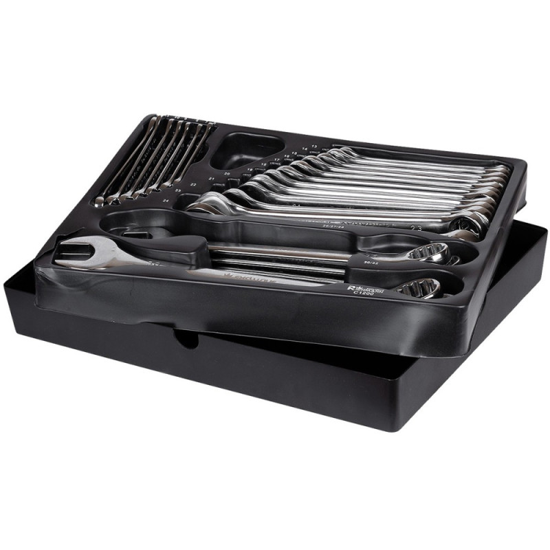 De Kombinatie sleutelset van 24 stuks is een uitgebreide set die zowel lussen als platte sleutels van 6 tot 32 mm bevat. Het biedt een volledige inleg voor diverse toepassingen, waardoor het een veelzijdige keuze is voor zowel professionals als doe-het-zelvers.