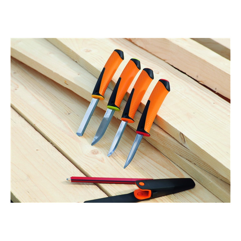 Prekės ženklas- Fiskars. Artikulas- 1023621. Ilgis- 20.9 cm. Medžiaga- Nerūdijantysis plienas. Su dėklu- Taip. Papildoma informacija- Aukštos kokybės kalto formos ašmenys. Nerūdijantis plienas. Įmontuotas, patogus naudoti galąstuvas. .