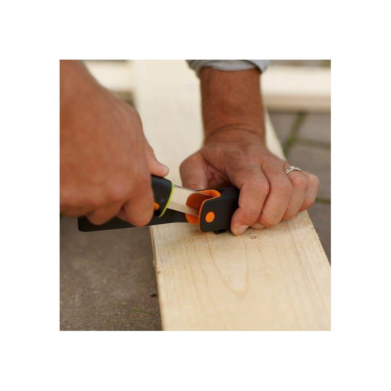 Prekės ženklas- Fiskars. Artikulas- 1023619. Ilgis- 21.9 cm. Ašmenų plotis- 4 cm. Medžiaga- Plastikas, Nerūdijantysis plienas. Svoris- 0.17 kg. Ašmenys komplekte- Taip. Ašmenų skaičius- 1. Su dėklu- Taip.
