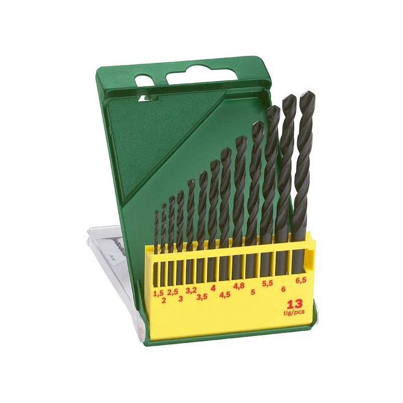 Prekės ženklas- Bosch. Ilgis- 10.1 cm. Darbinės dalies ilgis- 6.3 cm. Skersmuo- 6.5 mm. Grąžto tipas- HSS. Tvirtinimo tipas- Tiesus. Komplekte- 13 vnt: 1.5-6.5 mm. Apdirbama medžiaga- Metalas. Garantija- 24 mėn. Papildoma informacija- Komplektas metalo gręžimui. Laikiklis.