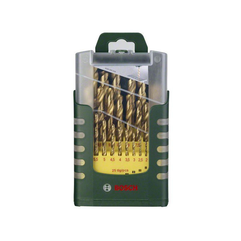 Prekės ženklas- Bosch. Artikulas- 2607017152. Ilgis- 13.3 cm. Skersmuo- 1 mm, 1.5 mm, 2 mm, 2.5 mm, 3 mm, 3.5 mm, 4 mm, 4.5 mm, 5 mm, 5.5 mm, 6 mm, 6.5 mm, 7 mm, 7.5 mm, 8 mm, 8.5 mm, 9 mm, 9.5 mm, 10 mm. Grąžto tipas- HSS-TiN. Tvirtinimo tipas- Tiesus. Komplekte- Ø 1/1.5/2/2.5/3/3.5/4/4.5/5/5.5/, 6/6.5/7/7.5/8/8.5/9/9.5/10 mm. Apdirbama medžiaga- Metalas, Nerūdijantysis plienas. Tinkamas gręžimas- Sausas.
