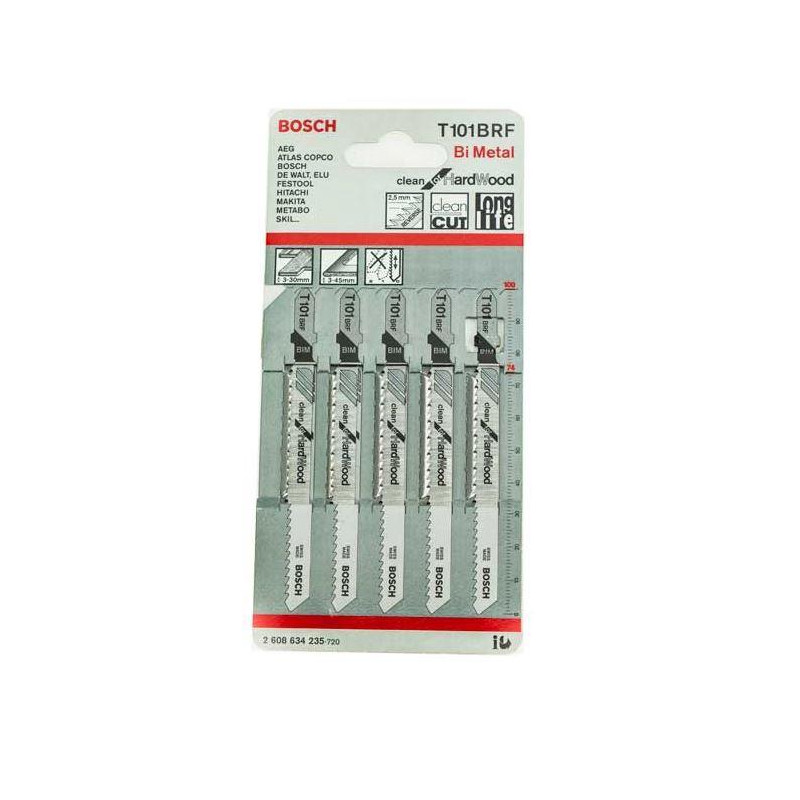 De Bosch T101BRF zaagbladen zijn ontworpen voor gebruik met een unieke tandstructuur die een schone snede in hout levert. Deze set van vijf bladen is handig voor verschillende zaagprojecten en bieden een lengtespecificatie die goed past bij standaard zaagmachines.