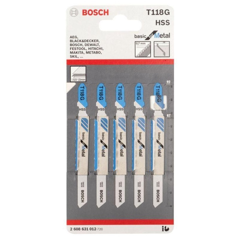 Prekės ženklas- Bosch. Artikulas- 2608631012. Ilgis- 92 mm. Darbinės dalies ilgis- 66 mm. Dantukų žingsnis- 0.7 - 0.7mm. Apdirbama medžiaga- Metalas, Plienas. Pjūvio storis- 0.5 - 1.5mm. Tinkamas pjovimas- Švarus. Vienetai pakuotėje- 5.