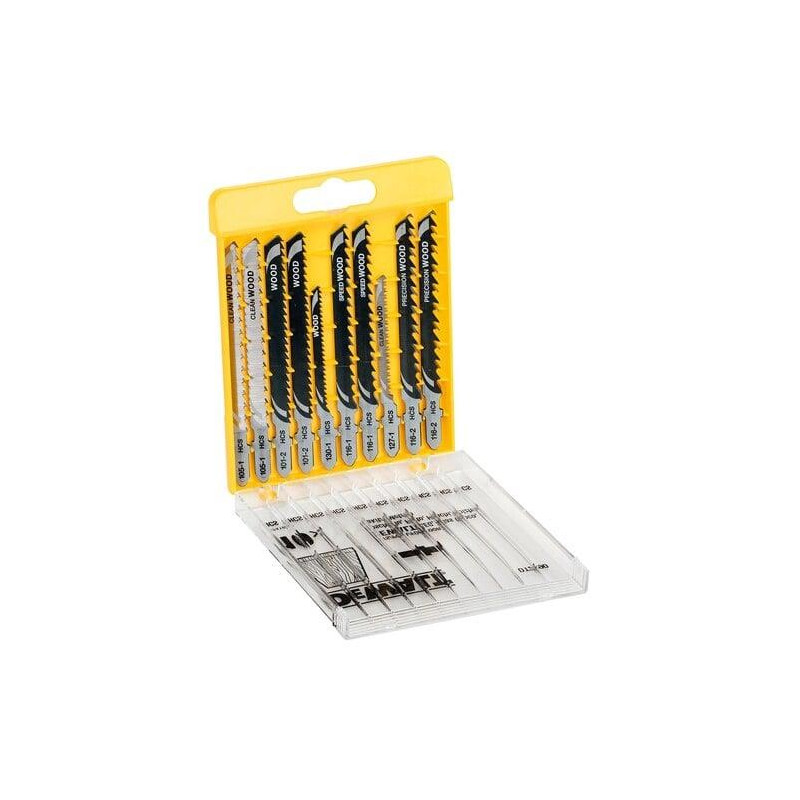 Siauriapjūklio pjūklelių medienai rinkinys DeWalt 10 vnt