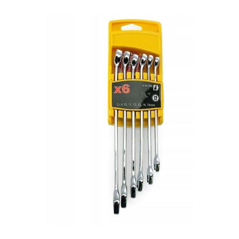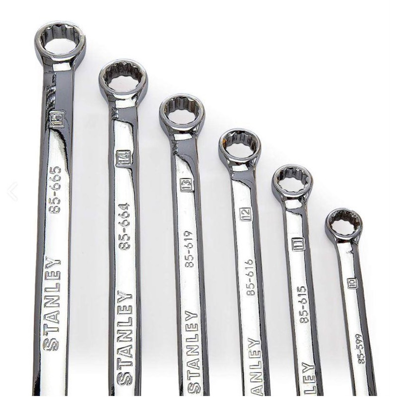 Prekės ženklas- Stanley. Modelis- 4-94-646. Artikulas- 4-94-646. Medžiaga- Metalų lydinys. Komplekto dalių skaičius- 6. Komplekte- Cr-V: 10; 11; 12; 13; 14; 15mm. Su dėklu- Taip.