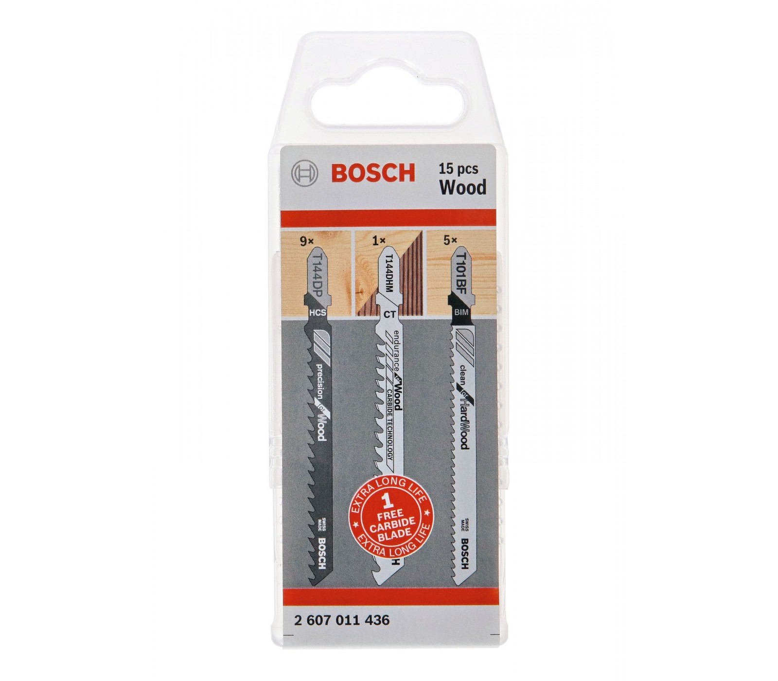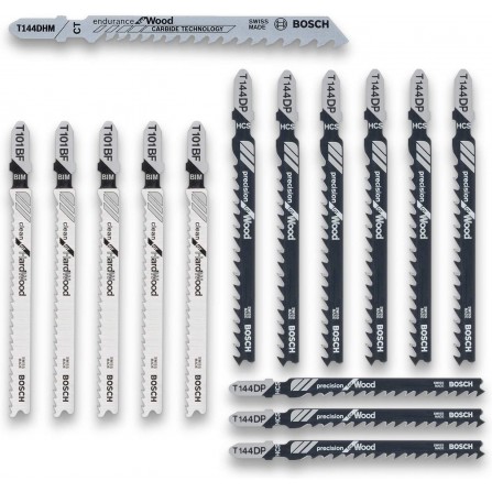 9 x T 144 DP Precision voor hout, 5 x T 101 BF Clean voor hard hout, 1 x T 144 DHM Endurance voor hout