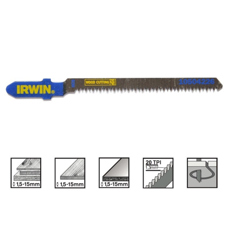 De IRWIN T101AO decoupeerzaag is ontworpen met fijne en scherpe tanden, perfect voor figuurzaagwerk zonder splinters of schilfers achter te laten op hout. Het heeft een lengte van 83 mm en een tandafstand van 1,3 mm, waardoor het ideaal is voor het zagen van laminaat en hout tot 15 mm dik.